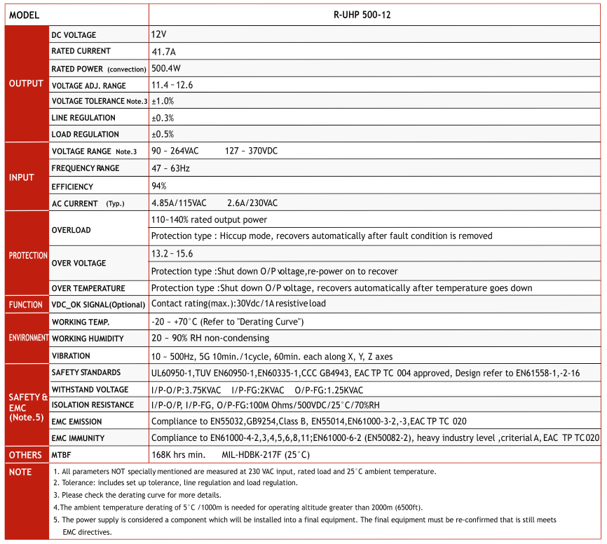 - Output: 12 VDC, 24 VDC, 48 VDC